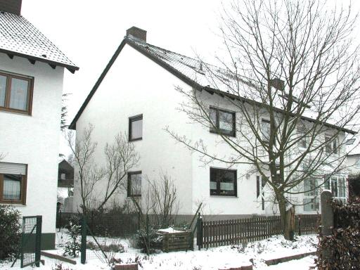The front half of the house is ours. View to the main entrance (behind the tree).
